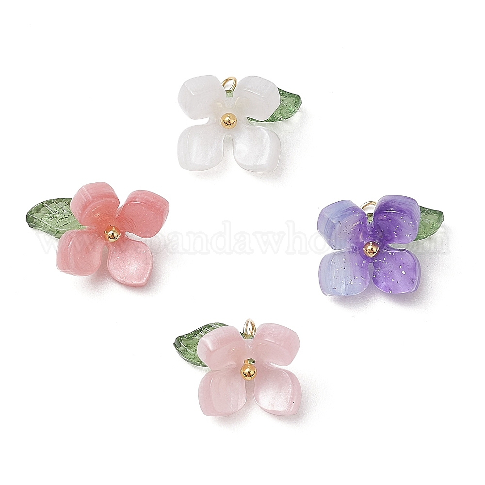 4 шт 4 цвета подвески из смолы, цветок, с акриловыми и латунными штифтами с шаровидной головкой