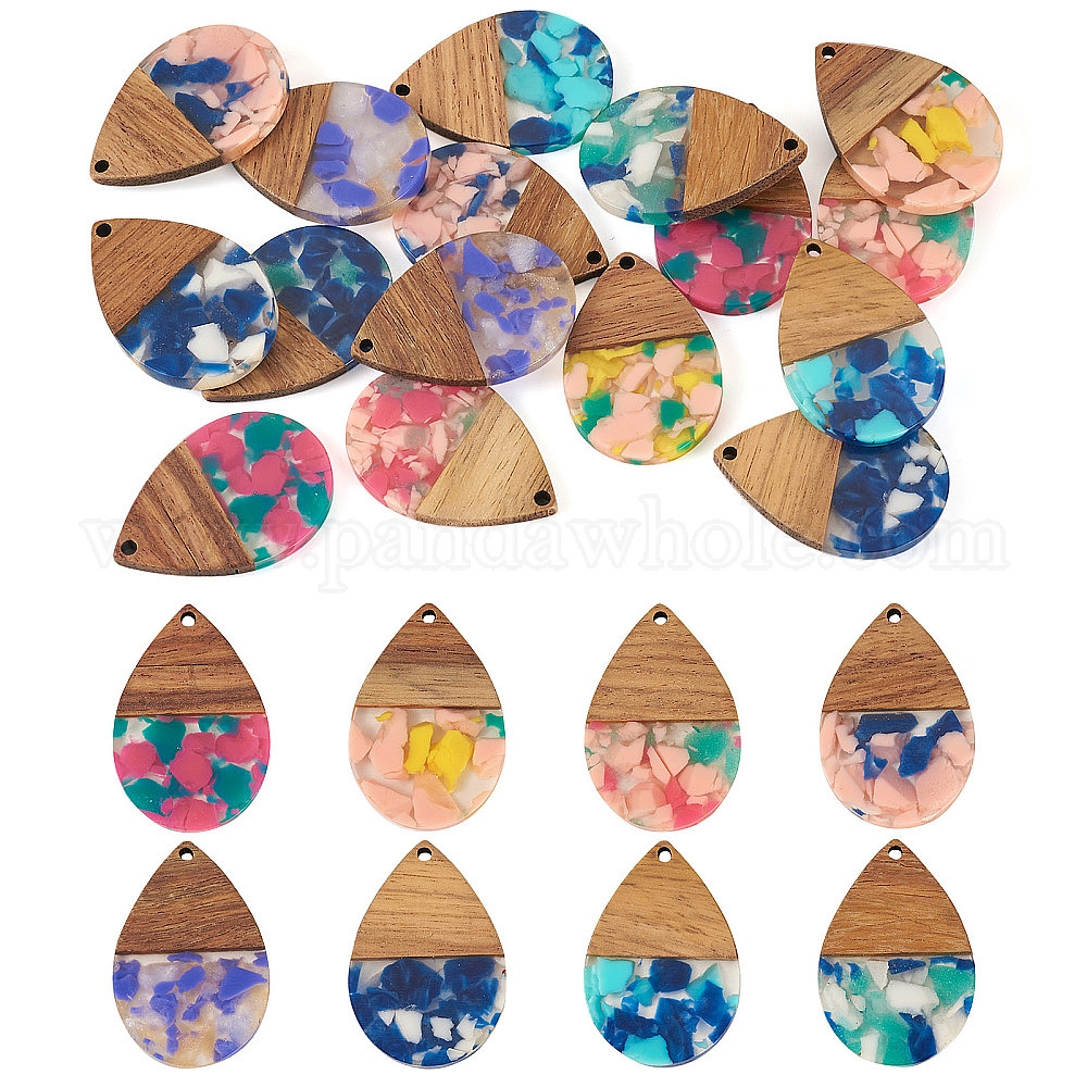16 шт. 8 подвески из цветной смолы и ореха, слеза