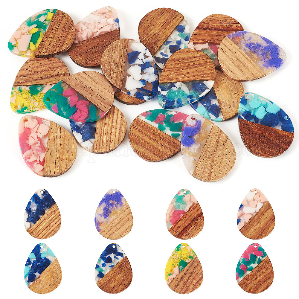 16 шт. 8 подвески из цветной смолы и ореха, слеза
