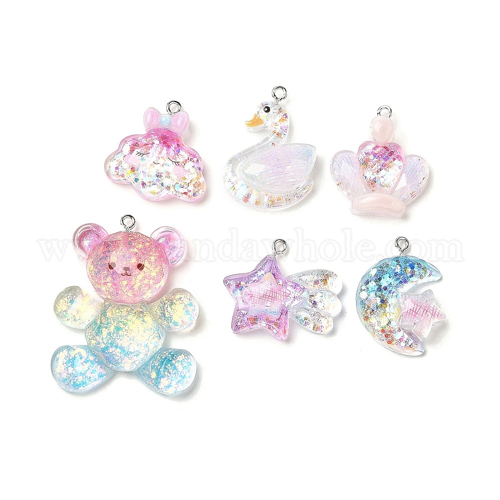 Прозрачные смоляные подвески, с платиновой железной фурнитурой и пайетками