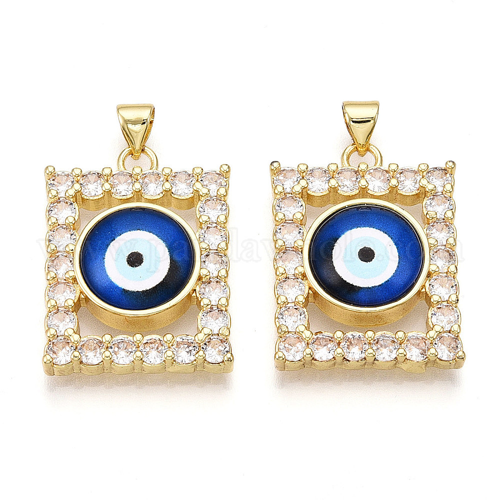 Латунные подвески с микропаве из прозрачных кубических цирконий для женщин, Прямоугольник с глаз, cmолой, реальный 18 k позолоченный