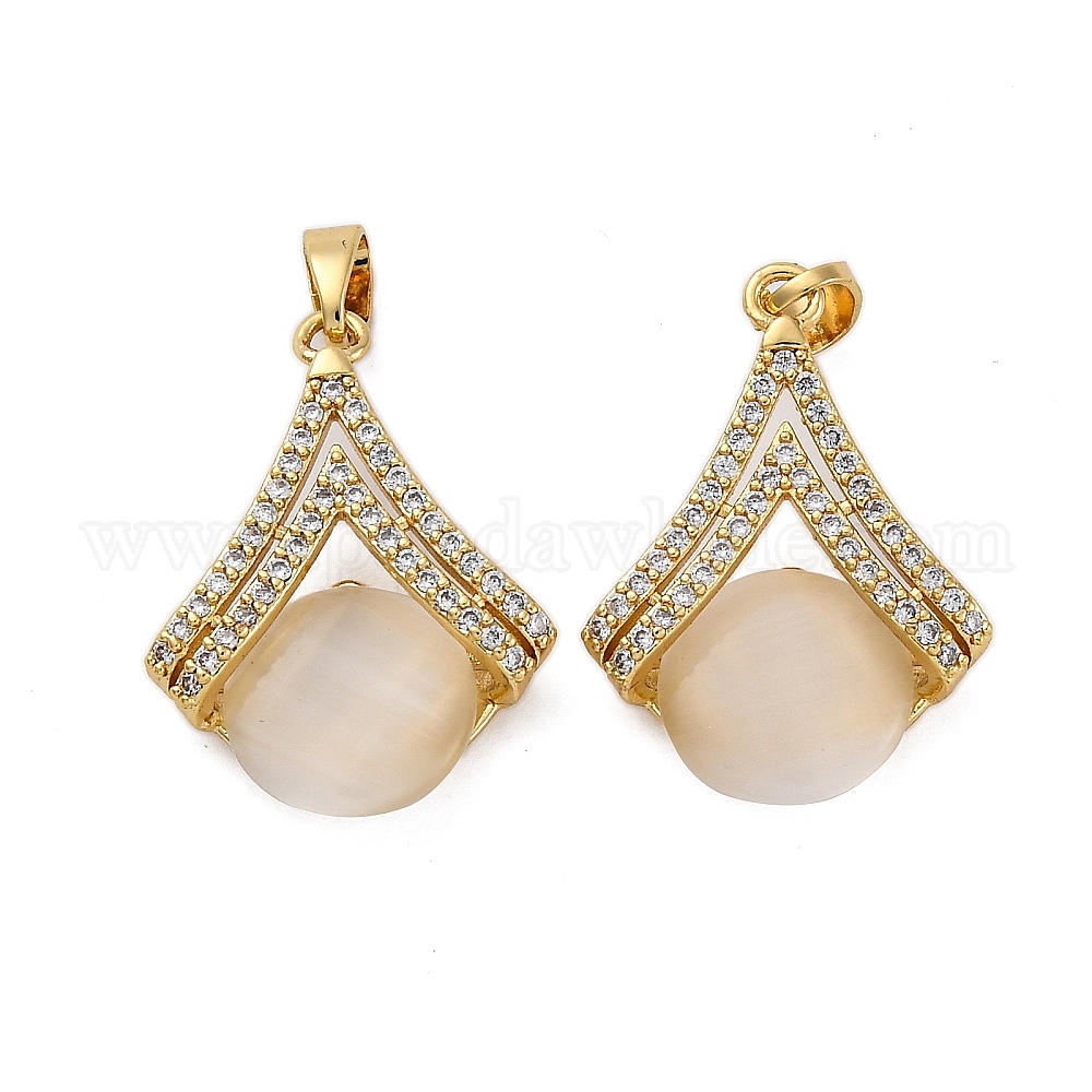 Подвески латуни cmолы, с прозрачным кубическим цирконием и имитацией кошачьего глаза, вентилятор, долговечный, без кадмия и без свинца, стойки покрытие