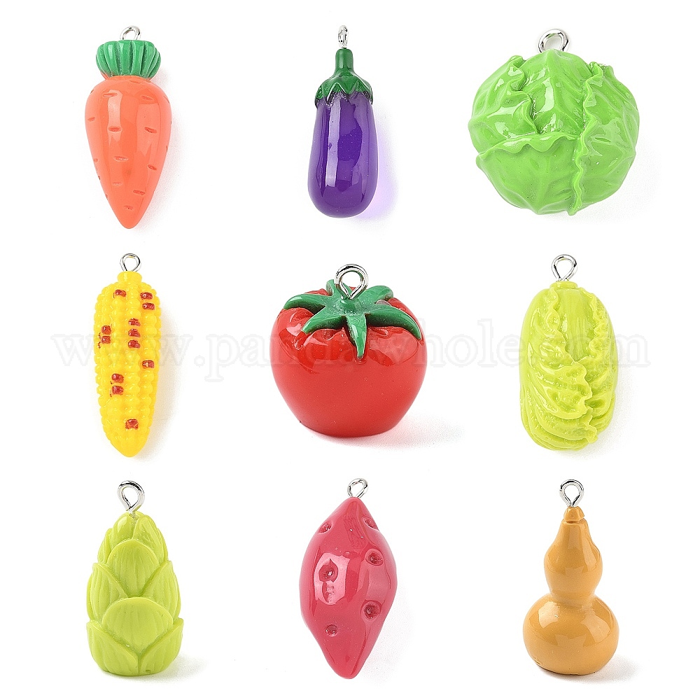 Непрозрачные подвески смолы, имитировать овощ, с платиновыми тоновыми железными петлями