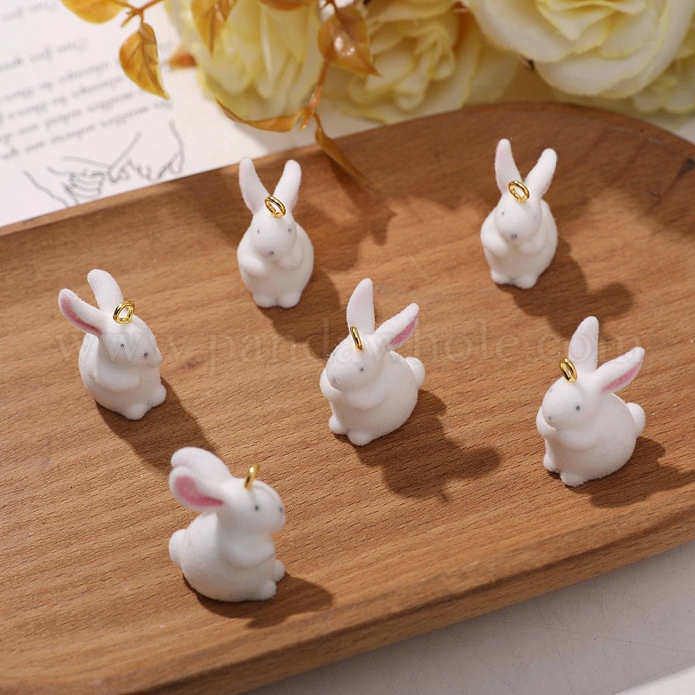 Подвески из флокированной смолы, кролик, с золотой железной петлей