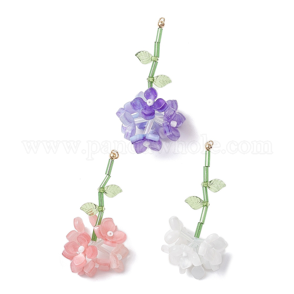 3шт 3цвета подвески из смолы цветы, с бусинами из стекляруса и 304 кольцами из нержавеющей стали