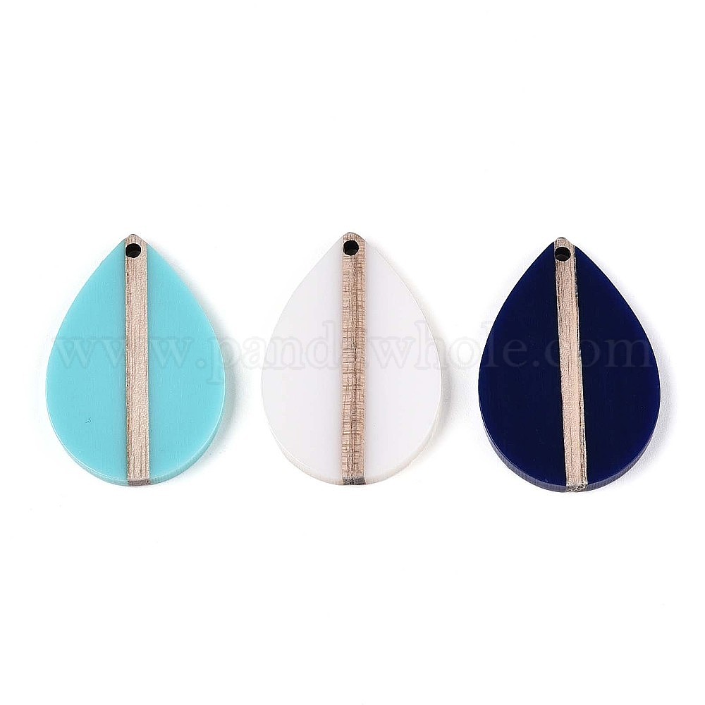 • Средний Бирюзовый Кулоны из непрозрачной смолы и дерева, слеза, средне бирюзовый, 36~36.5x24.5x3.5 мм, отверстие : 2 мм