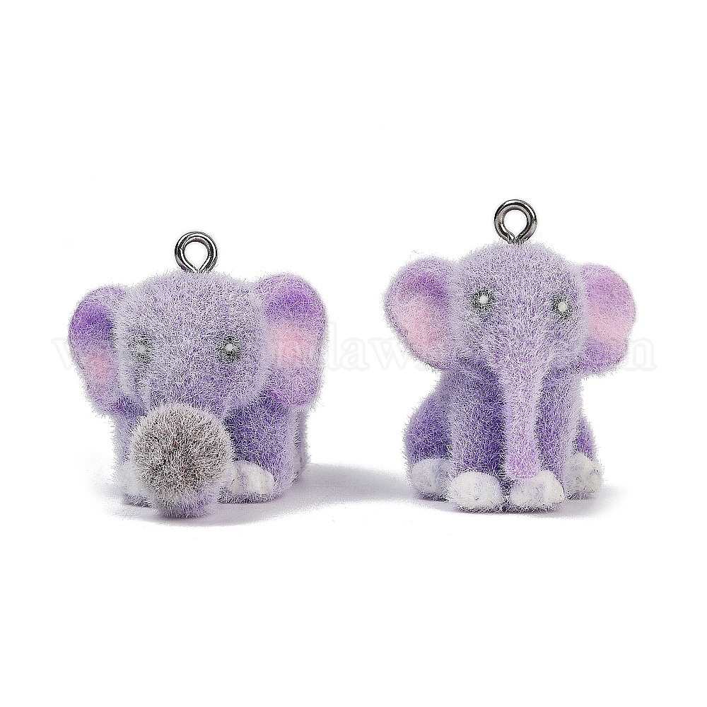 Подвески из флокированной смолы, слон, с платиново-железными петлями
