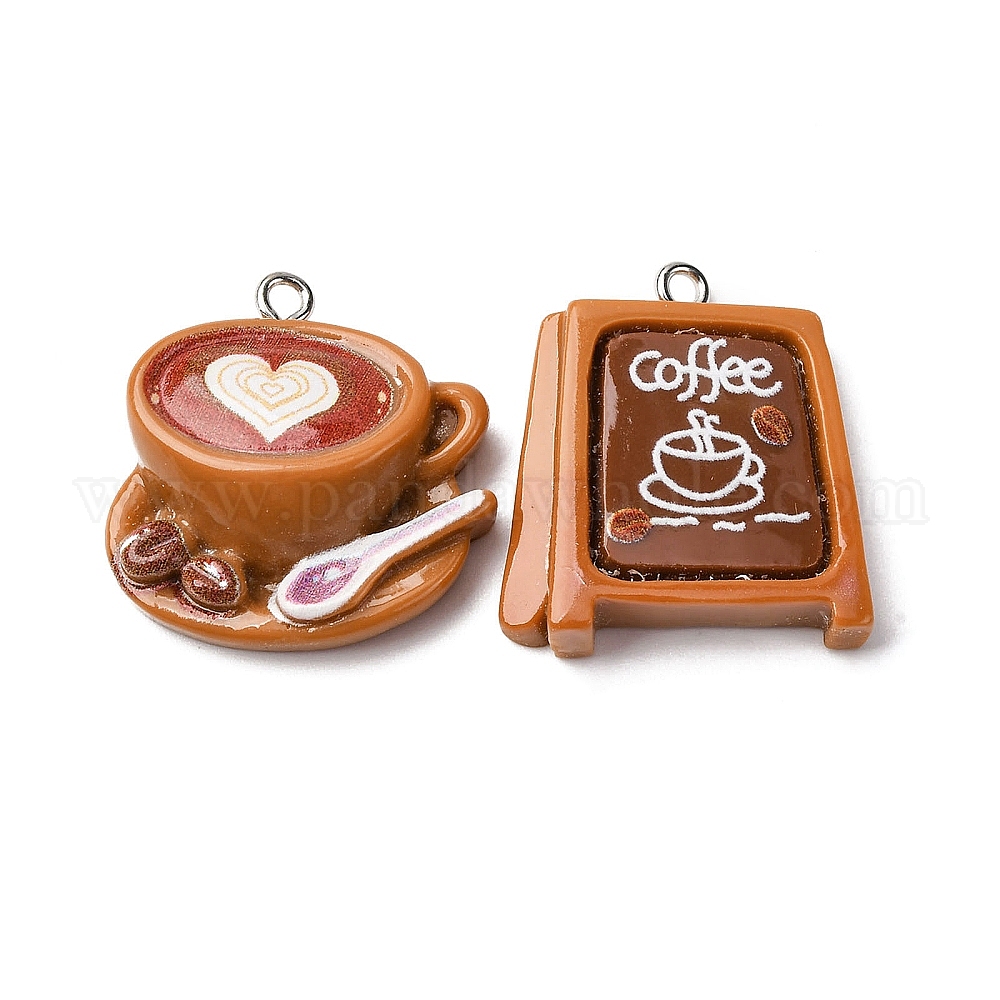 • Drink Подвески из смолы, с железной платиной петлей, кофе, 25x25.5x9 мм, отверстие : 2 мм
