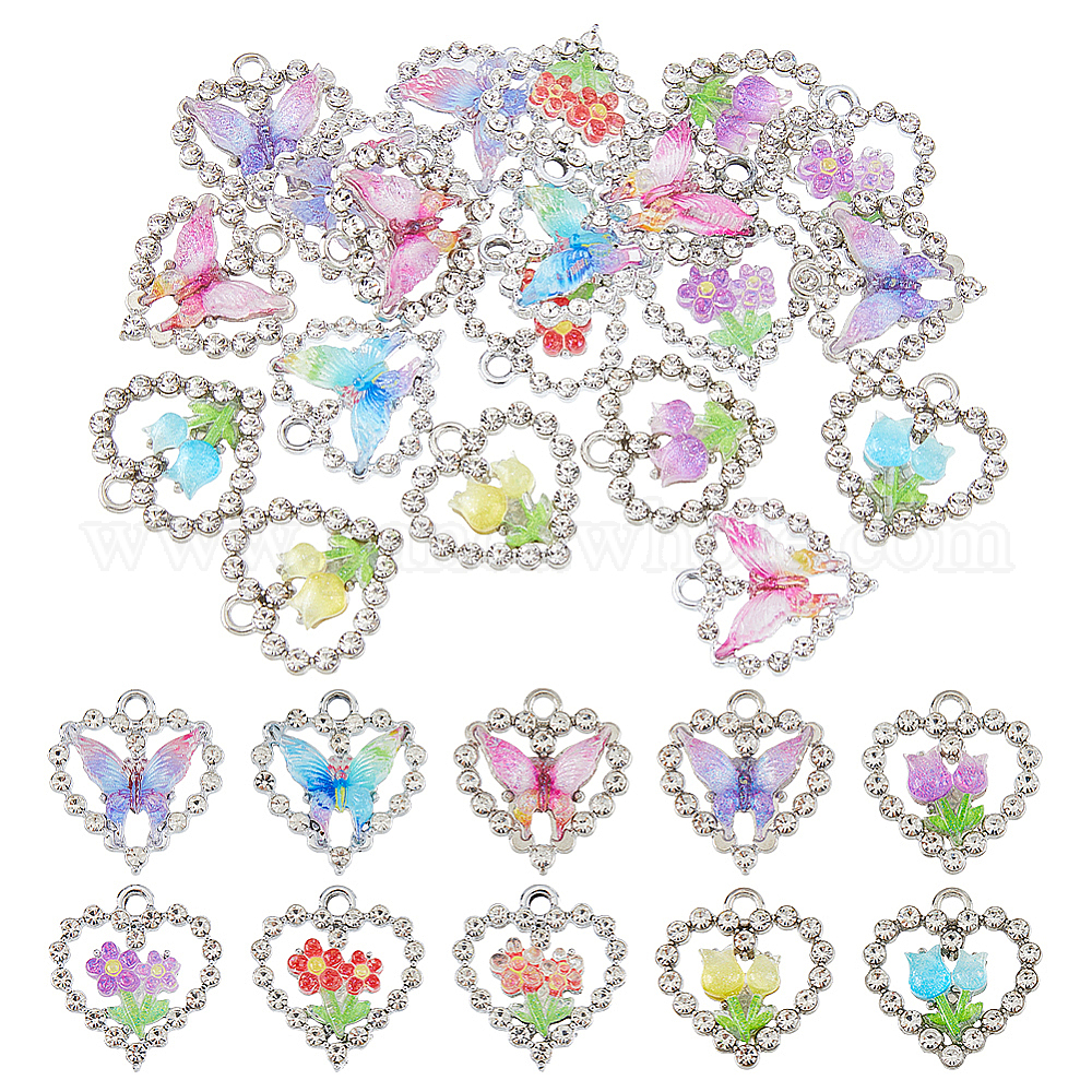 20шт 10 стили подвески из сплава стекла, сердце с цветком-бабочкой, cmолой
