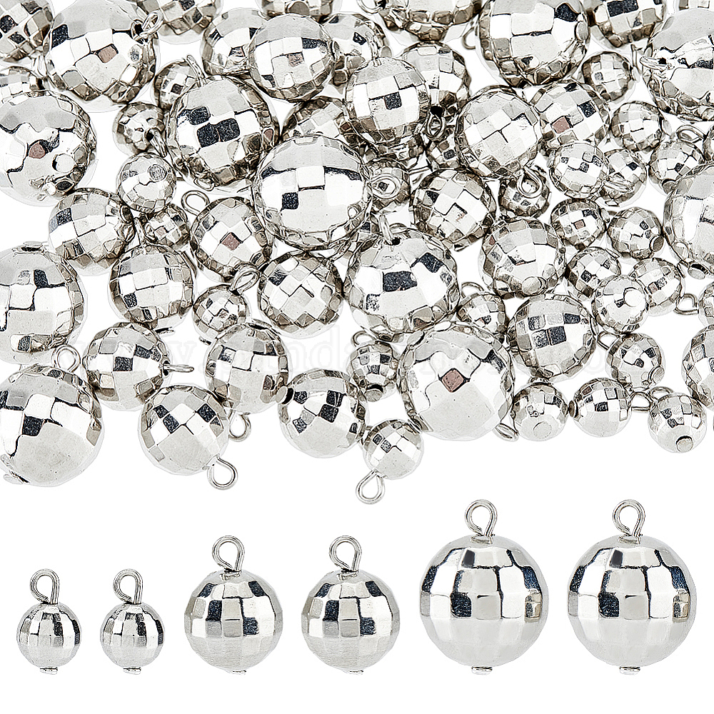 72 шт 3 стили подвески из смолы, шарм диско-шар, граненые, с железной петлей