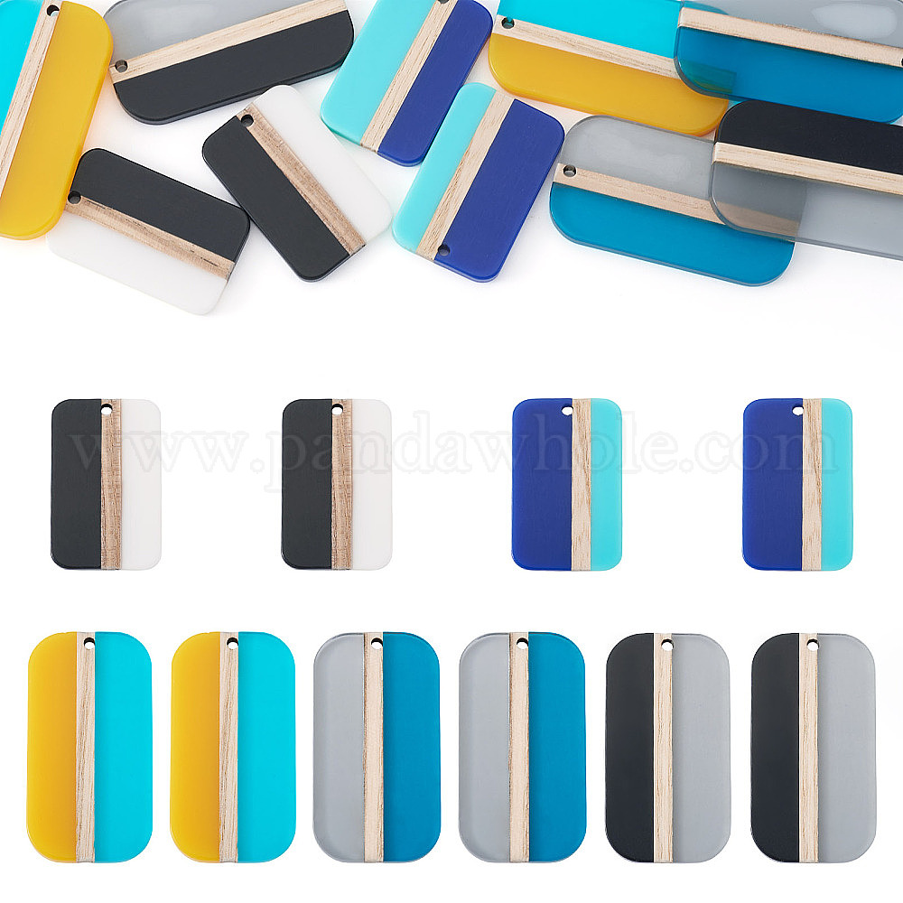 10шт 5 цвета подвески из смолы и дерева, прямоугольные, два тона