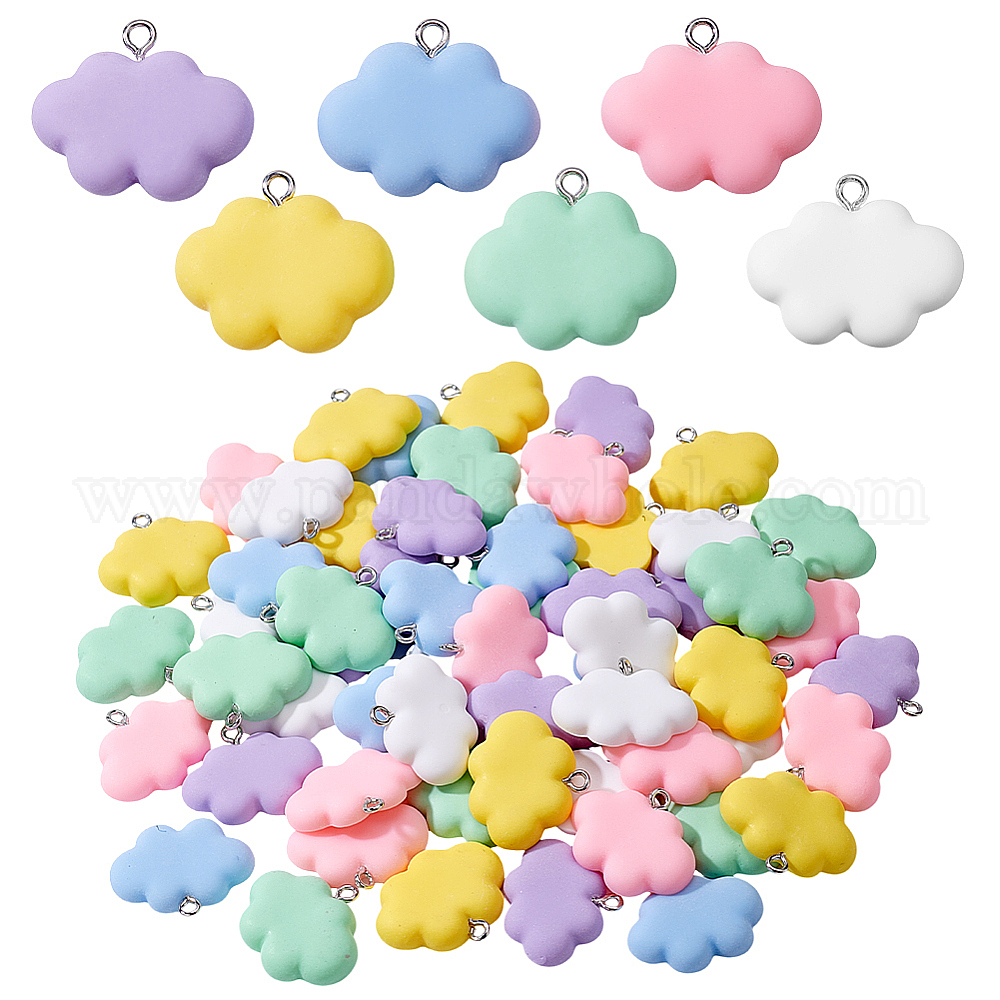 60 шт 6 цвета подвески из непрозрачной смолы, облако, с платиновым шлейфом