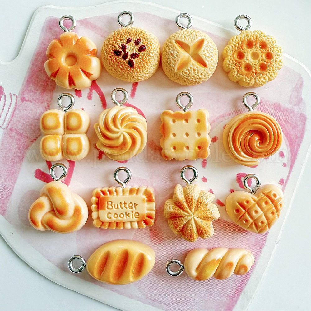 Непрозрачные подвески смолы, хлебное очарование, с платиновыми тоновыми железными петлями
