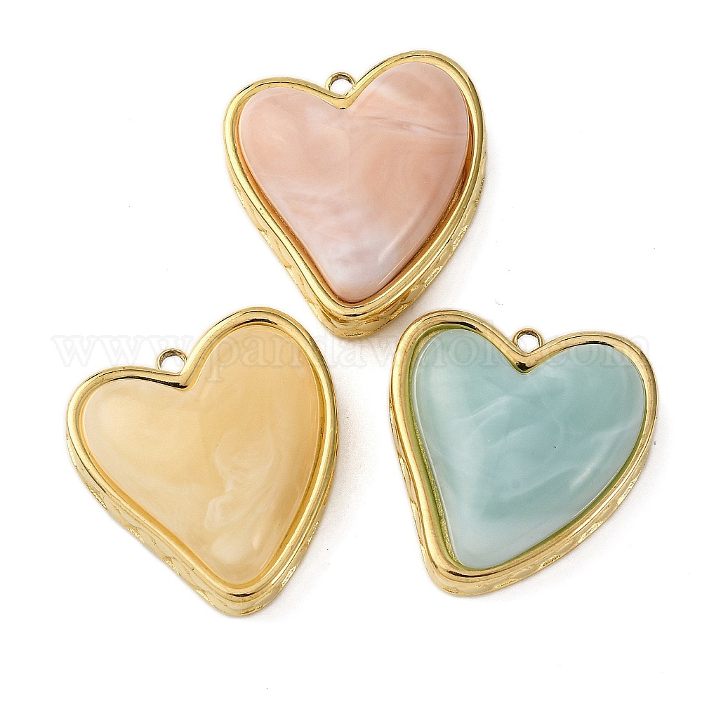 • Желтый 304 подвески из нержавеющей стали, сердце, cmолой, вакуумное покрытие pvd, реальный 18 k позолоченный, желтые, 24x23x10 мм, отверстие : 1.8 мм