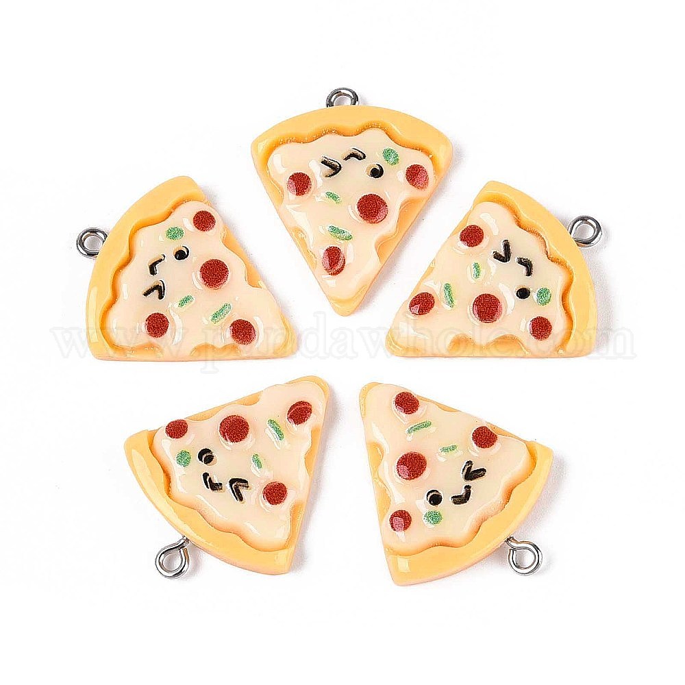 Непрозрачные подвески смолы, пицца, с платиновым тоном железная петля