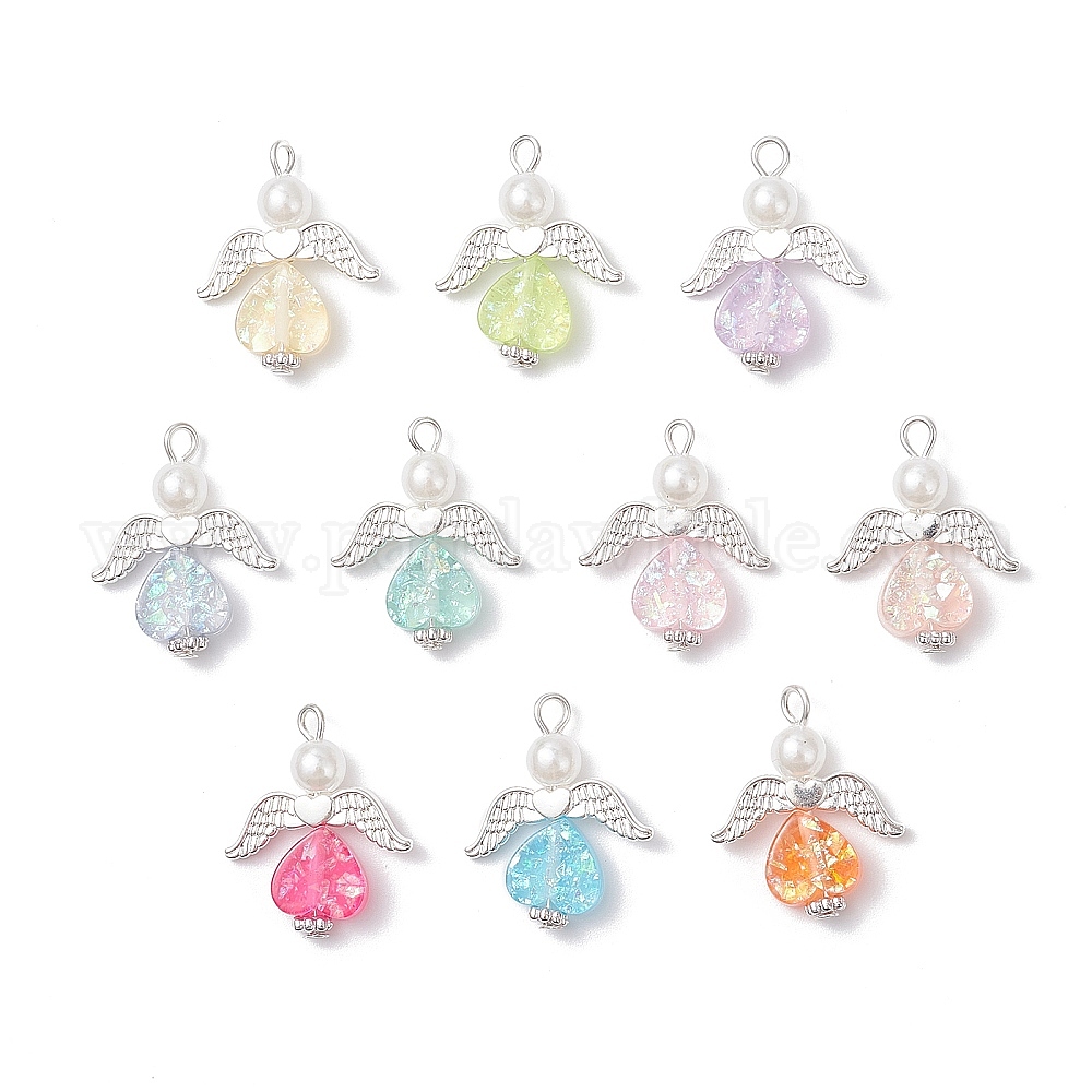 Прозрачные смоляные подвески, подвеска в форме сердца с ангелом, с блестящей пудрой, крылом из сплава и железной петлей