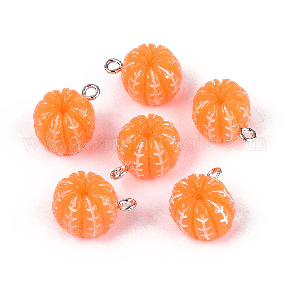 Непрозрачные подвески смолы, оранжевые, с железной петлей с платиновым покрытием