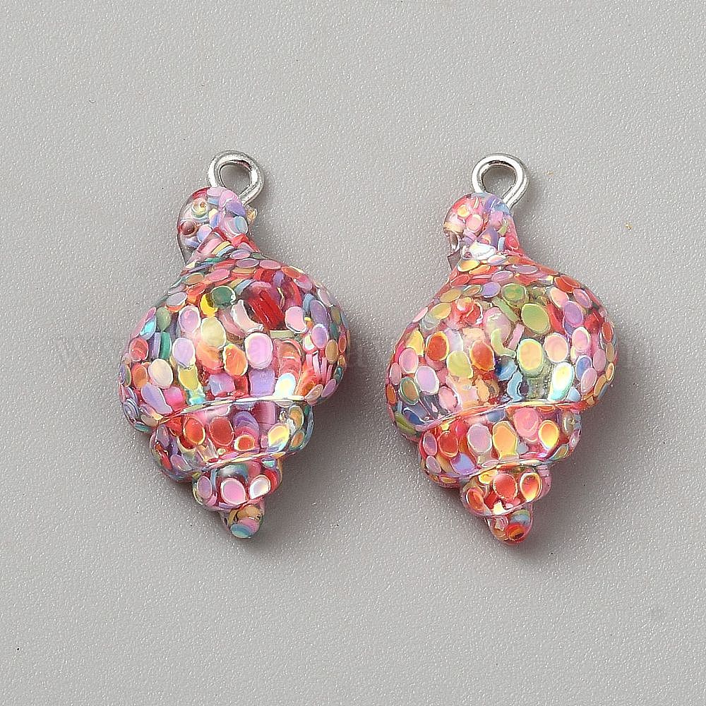 • Разноцветный Подвески из смолы, раковина, с железной платиной петлей, красочный, 27x15.5x10 мм, отверстие : 1.8 мм