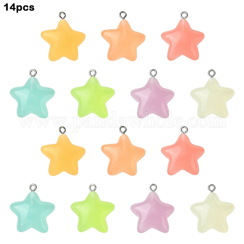 7 цветные светящиеся подвески из прозрачной смолы, звезды прелести, светится в темноте, из нержавеющей стали с цветным покрытием 304 петли из нержавеющей стали