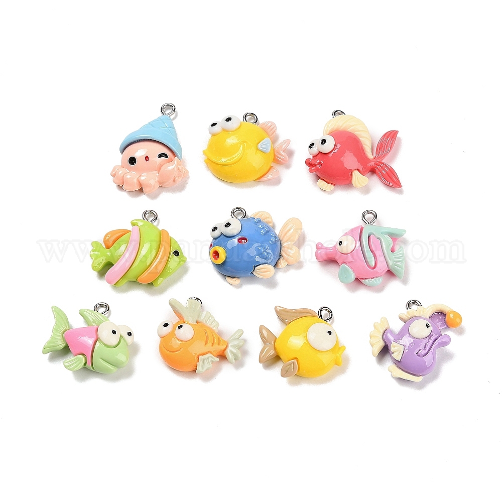 Непрозрачные подвески смолы, рыба и осьминог, с железной платиной петлей