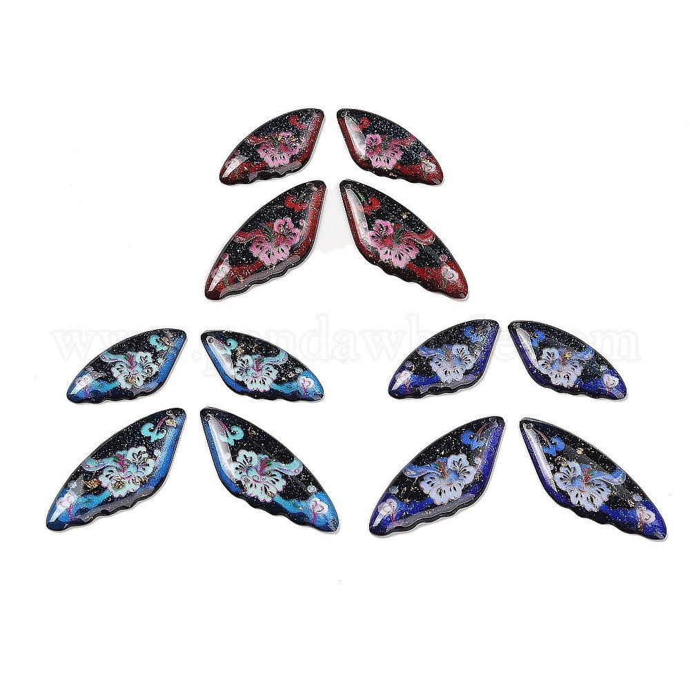 • Темно-Красный 4 шт 4 стили прозрачные подвески из эпоксидной смолы, крыло с цветочным узором, с пайетками и золотой фольгой, темно-красный, 29~39x14 ~ х 2.5 мм, отверстие : 1 мм
