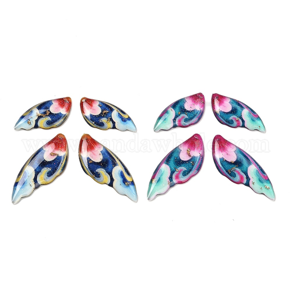 4 шт 4 стили прозрачные подвески из эпоксидной смолы, крыло с цветочным узором, с пайетками и золотой фольгой