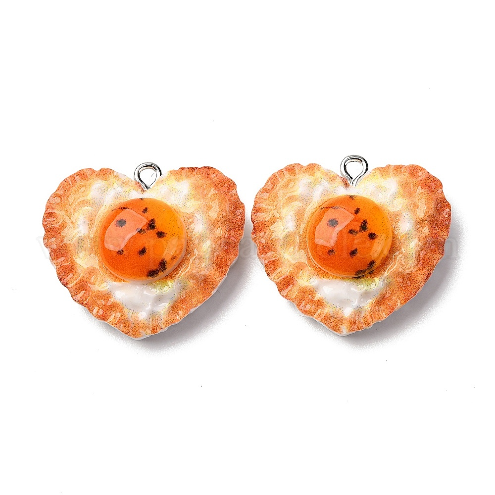 Непрозрачные подвески смолы, жареное яйцо в форме сердца, с платиновым тоном железная петля