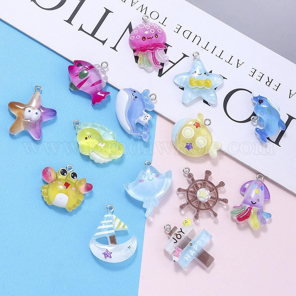 Подвески из прозрачной смолы на тему океана, с железной платиной петлей, разнообразные