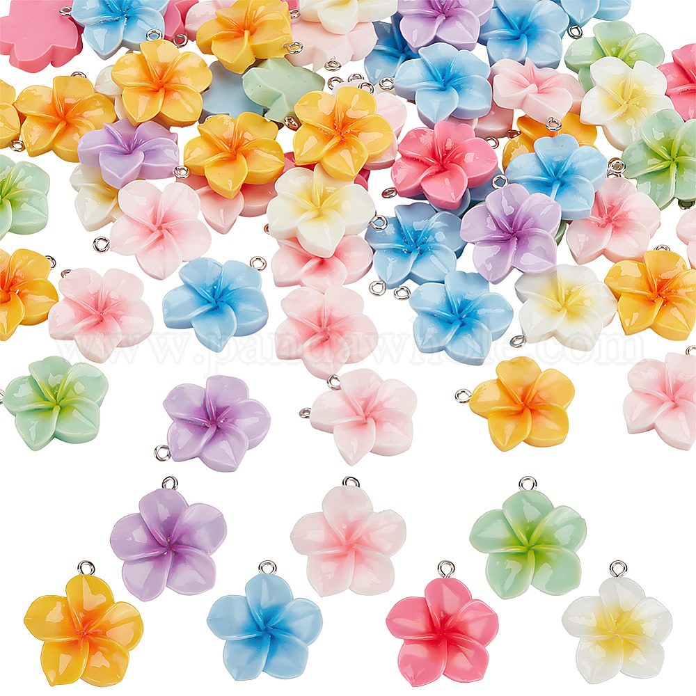 60подвески из непрозрачной смолы, плюмерия, с платиновым тоном железная петля