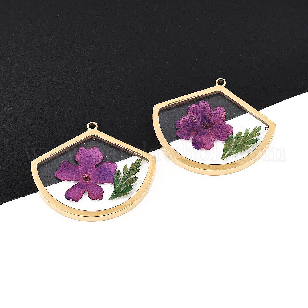 304 подвески из нержавеющей стали с эпоксидной смолой, веер с сухоцветом, ионное покрытие (ip), реальный 18 k позолоченный