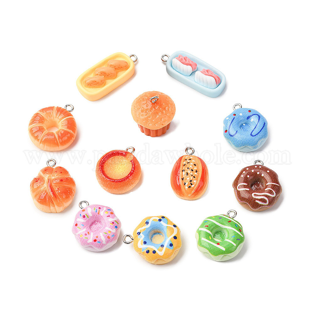 Непрозрачные подвески смолы, с платиновыми тоновыми железными петлями, набор подвесок в виде имитации хлеба для завтрака