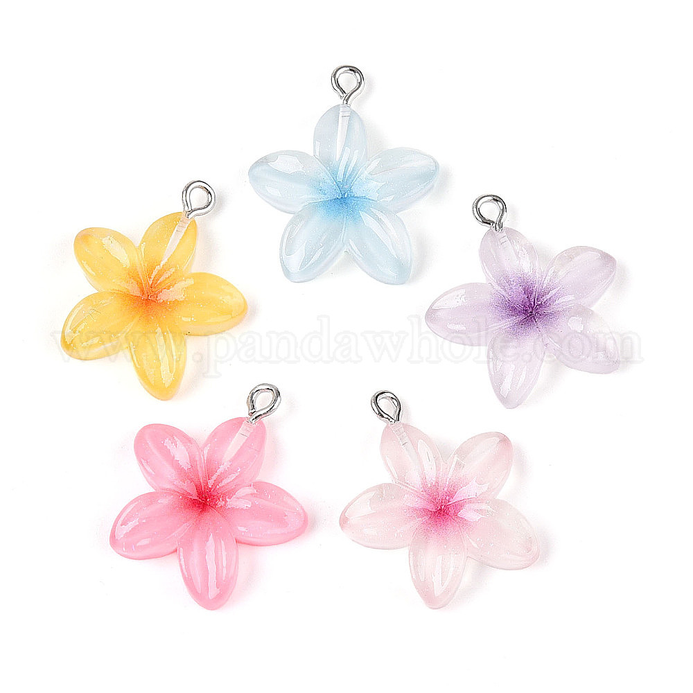 Прозрачные смоляные подвески, красный жасмин, с платиновыми железными петлями