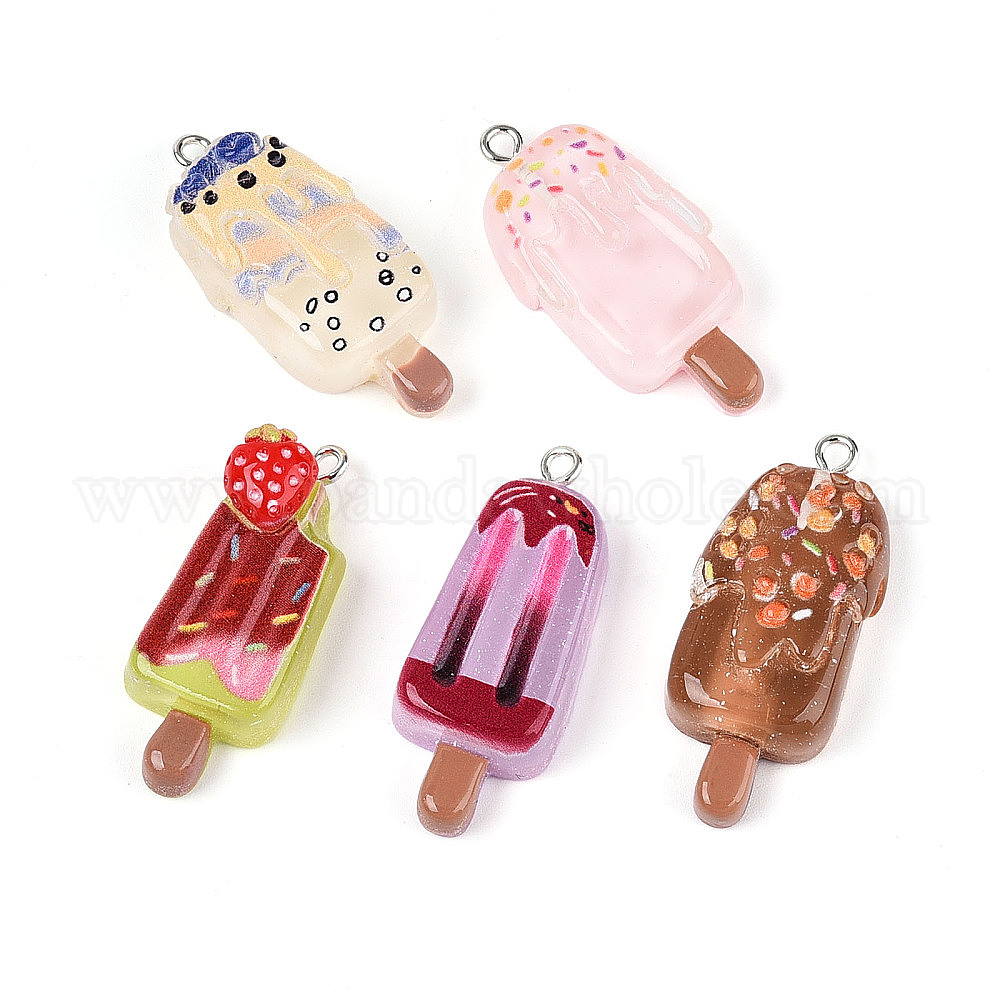 Прозрачные смоляные подвески, палочка для мороженого, с платиновыми железными петлями
