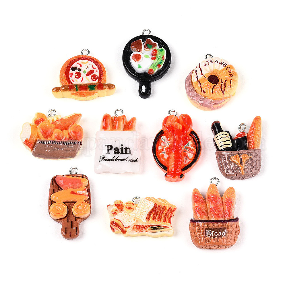 Непрозрачные подвески смолы, имитация еды, разнообразные, с платиновыми железными петлями