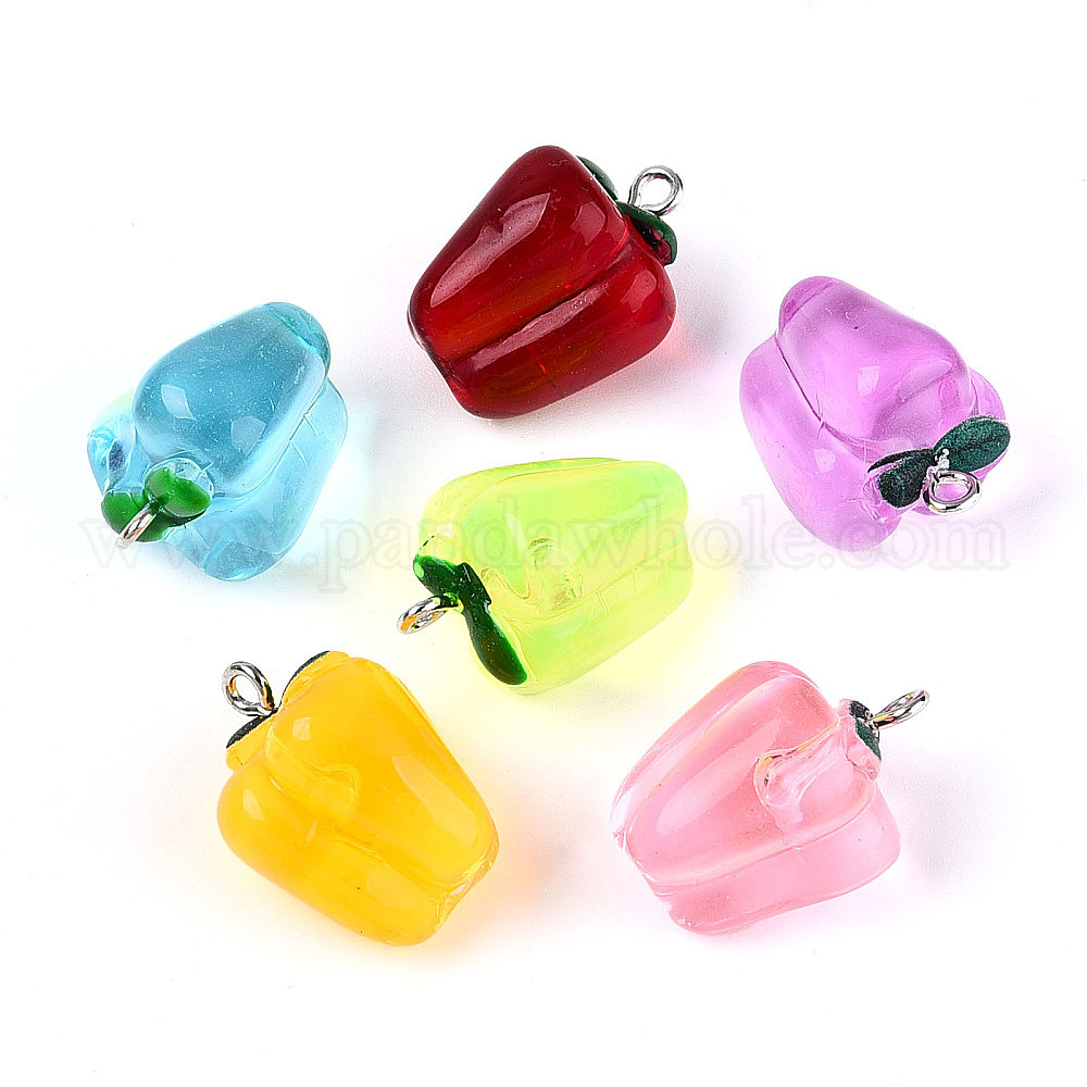 Прозрачные смоляные подвески, сладкий перец, с платиновыми железными петлями