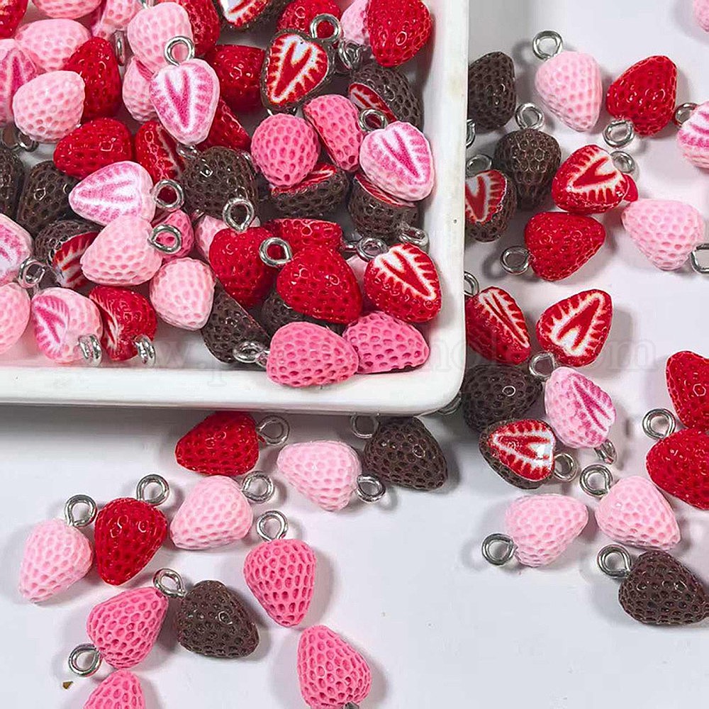 Непрозрачные подвески смолы, клубника, с платиново-железными петлями