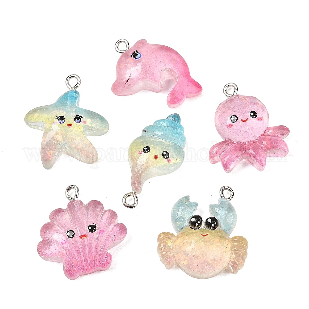 Подвески из прозрачной смолы на тему океана, с железной платиной петлей