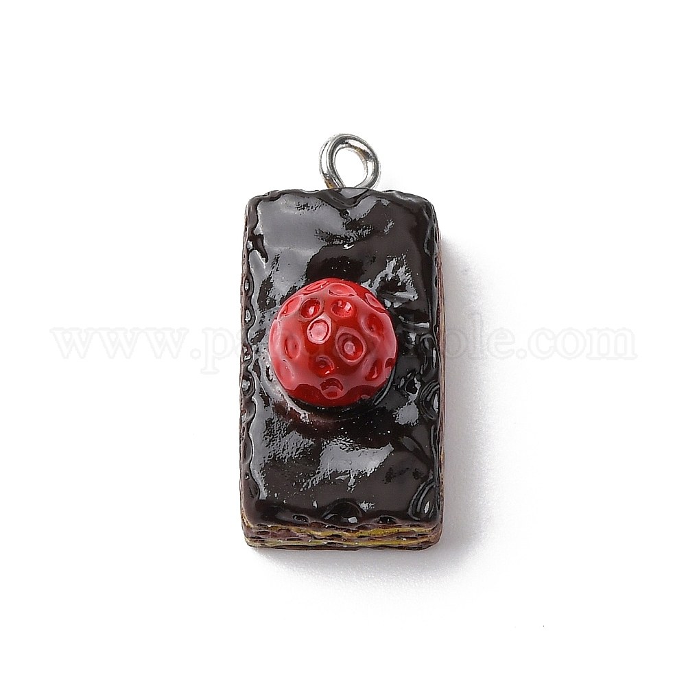 Непрозрачные подвески смолы, имитация еды, шоколадный клубничный торт-очарование, с железной платиной петлей