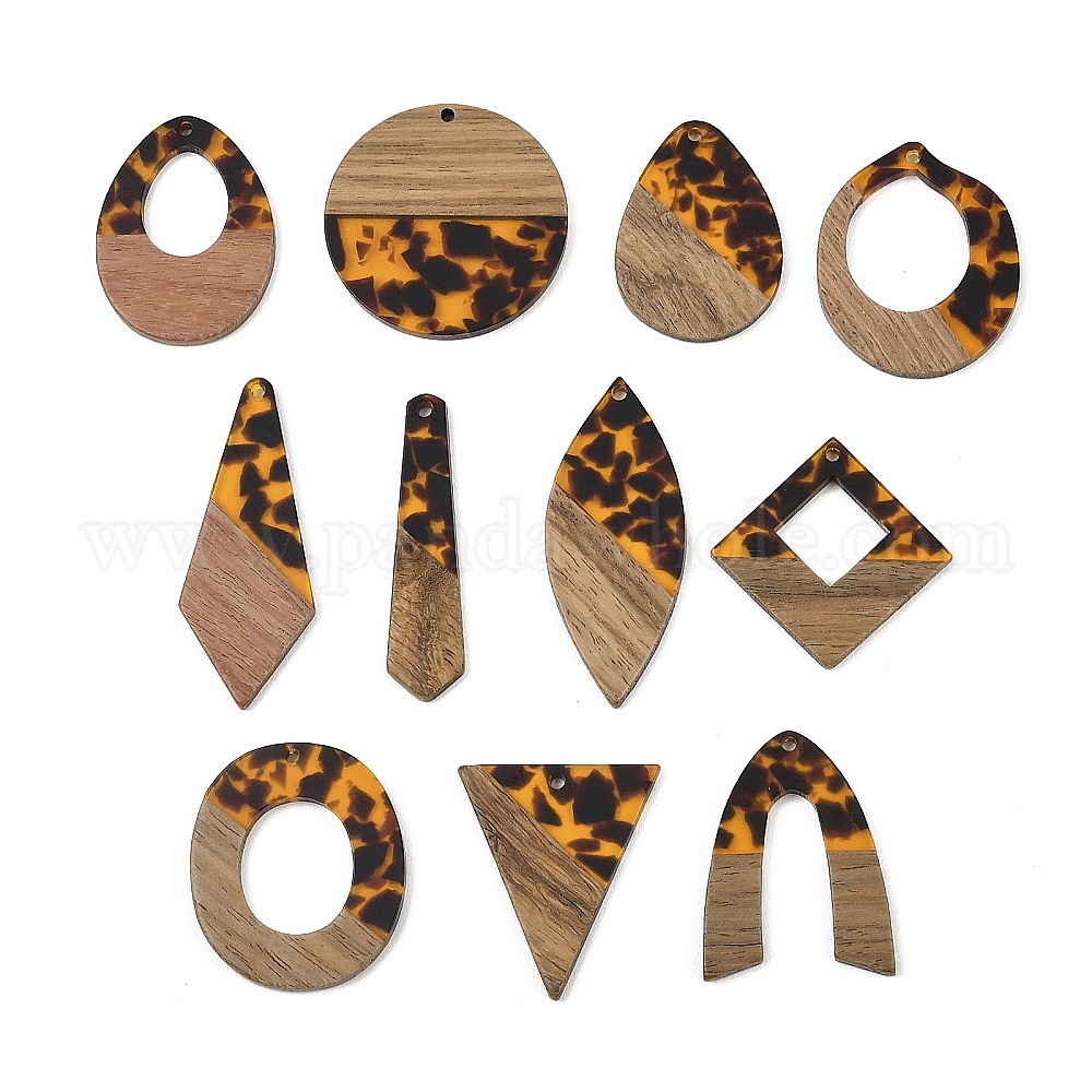 Подвески из прозрачной смолы и орехового дерева