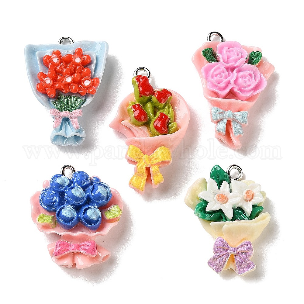Непрозрачные подвески смолы, букет с подвеской-бантом, с железной платиной петлей
