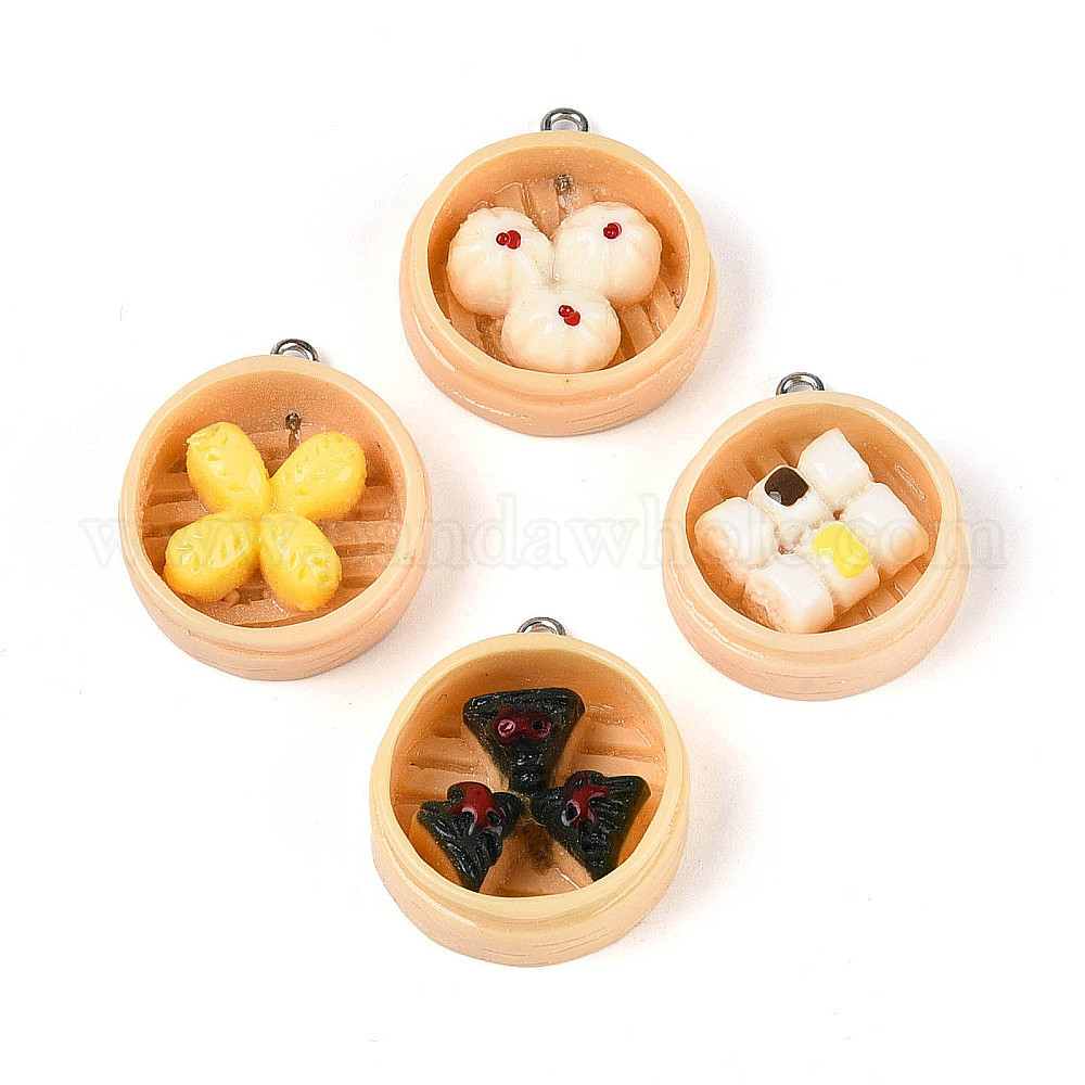 Непрозрачные подвески смолы, имитация еды, пароход с десертными украшениями, с платиновыми железными петлями