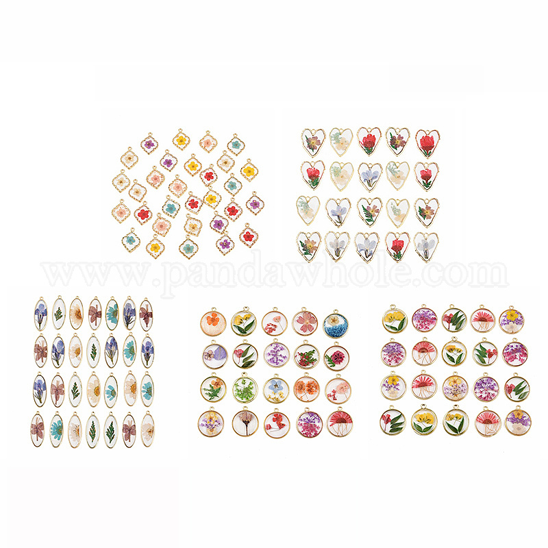 Подвески из эпоксидной смолы, внутренние подвески из сушеных цветов, золотые, разноцветные