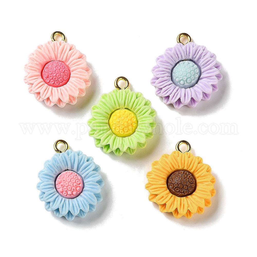 Непрозрачные подвески смолы, маргаритка, с платиновыми тоновыми железными петлями