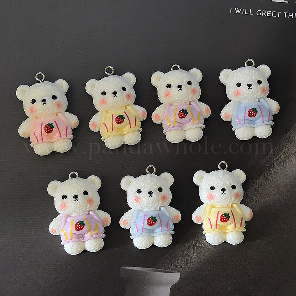 Непрозрачные подвески смолы, клубничный медведь, с платиново-железными петлями