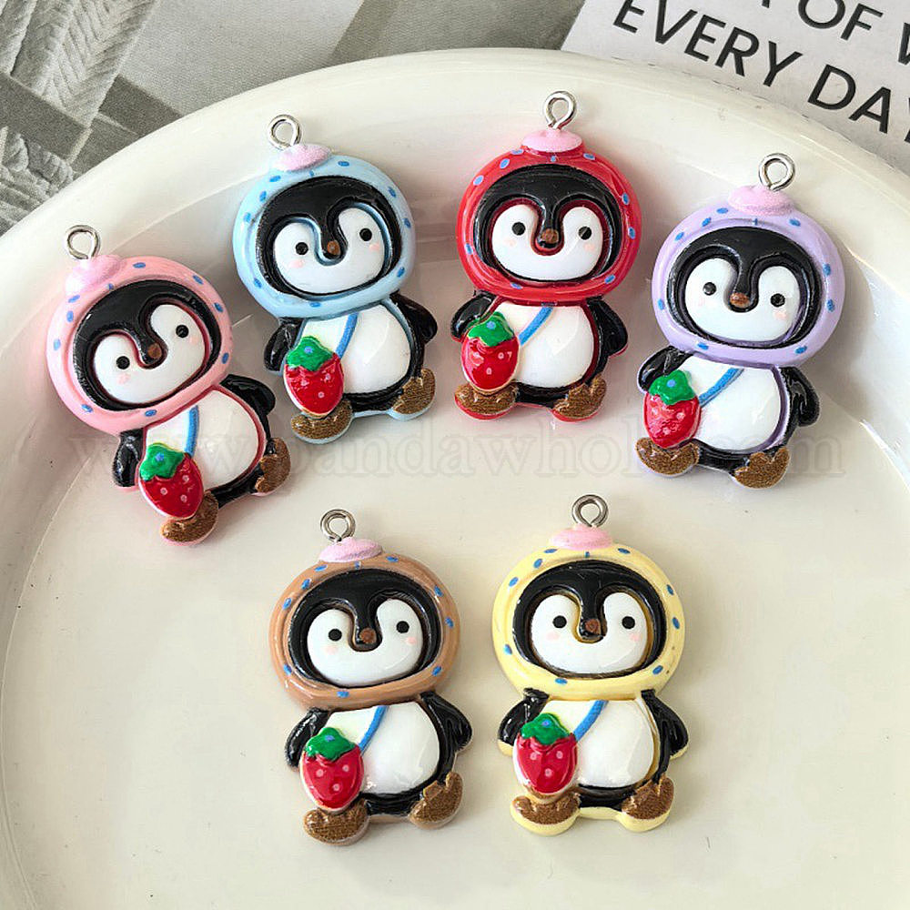 Непрозрачные подвески смолы, клубничный пингвин, с платиново-железными петлями