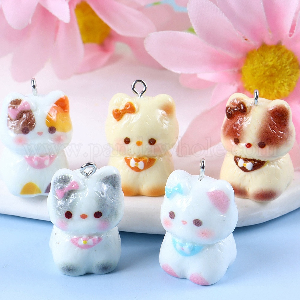 Непрозрачные подвески смолы, подвески в форме кошки, с платиновыми тоновыми железными петлями