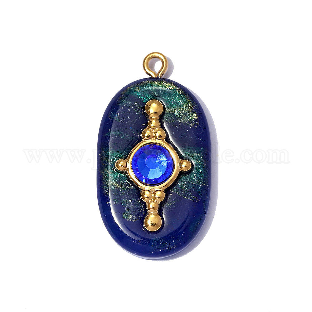 304 подвески из нержавеющей стали смолы, овальные амулеты, со стразами, ионное покрытие (ip), долговечный, зеркальная полировка