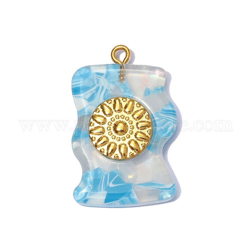 • Настоящее золото 18K 304 подвески из нержавеющей стали смолы, самородки с круглыми подвесками, ионное покрытие (ip), долговечный, зеркальная полировка, реальный 18 k позолоченный, 32x21 мм, отверстие : 2 мм