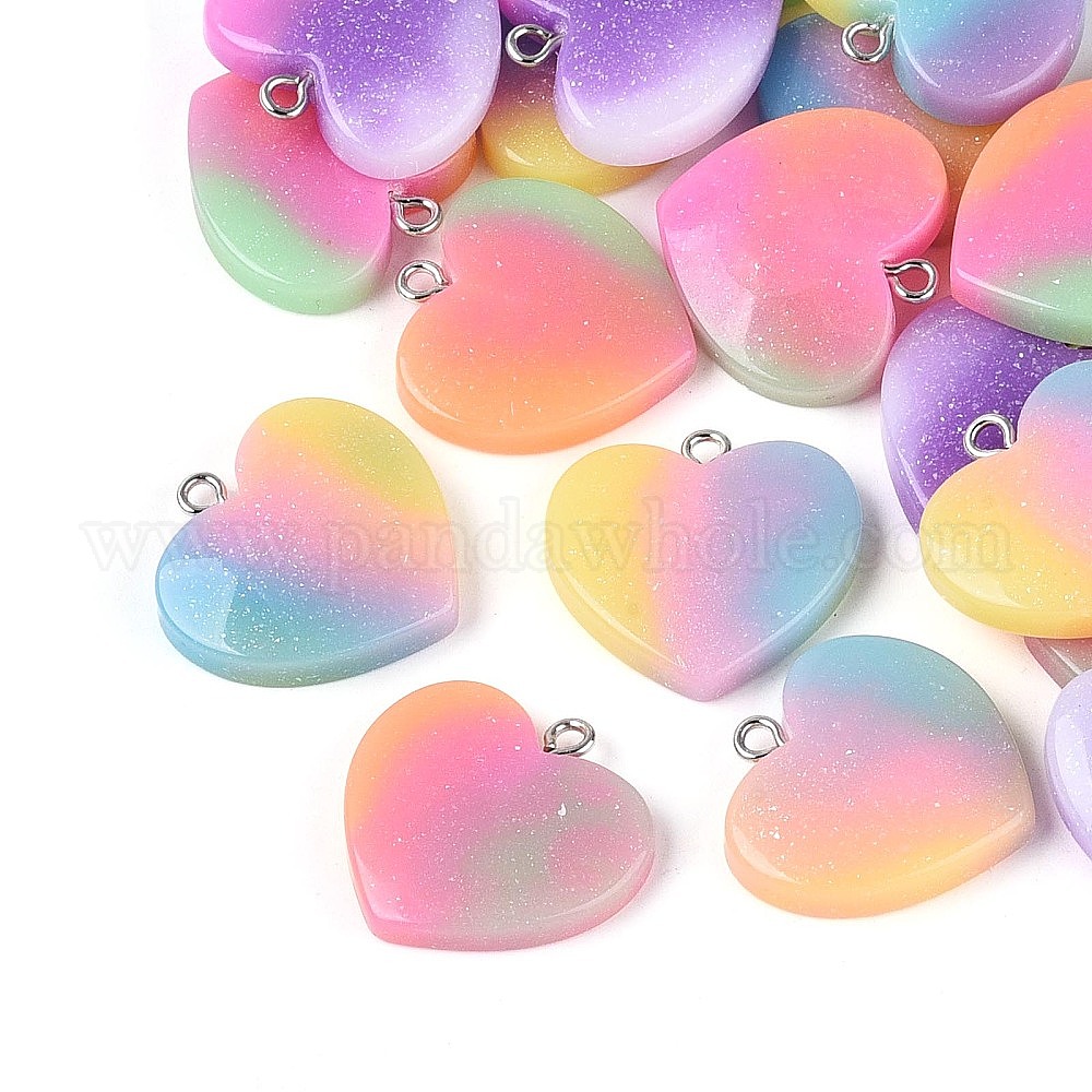 Подвески из непрозрачной смолы и блестящей пудры, сердце прелести, с железной платиной петлей (03AWPD)