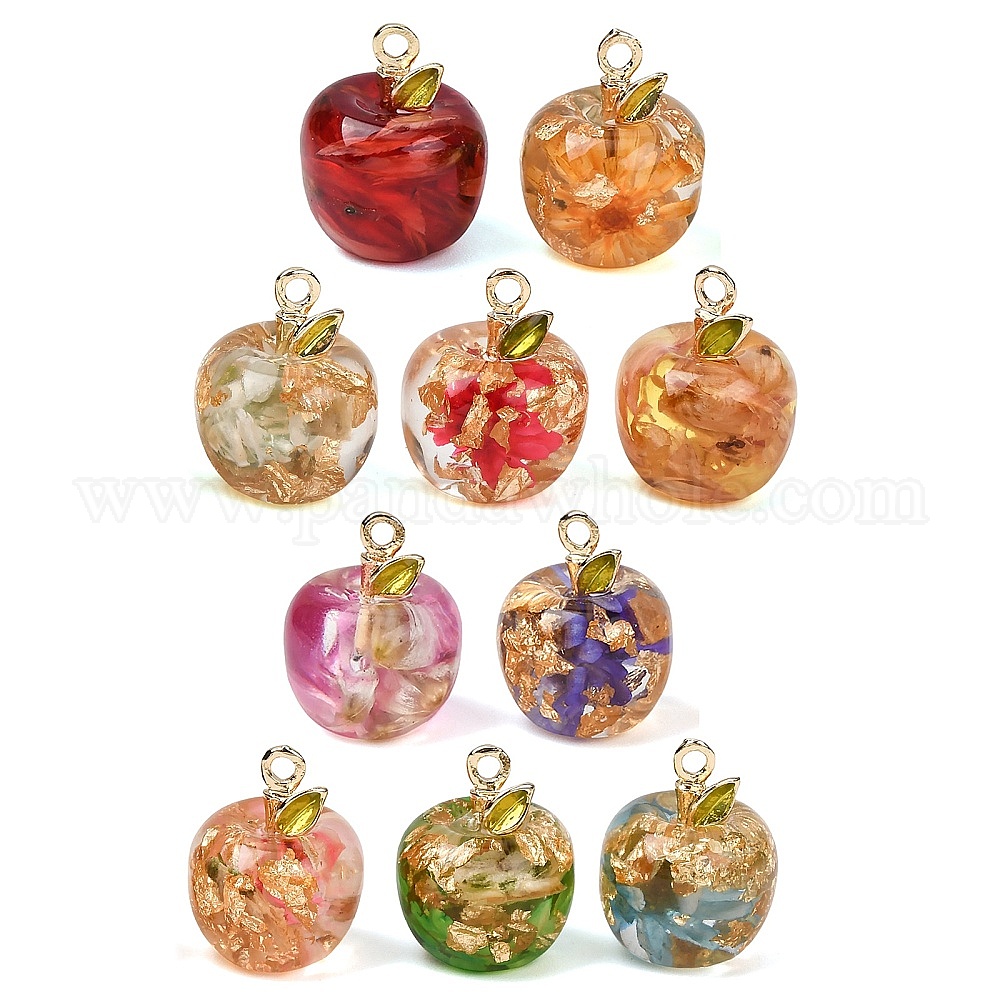 Подвески из смолы, Подвеска в виде яблока с засушенным цветком внутри, с золотой железной петлей